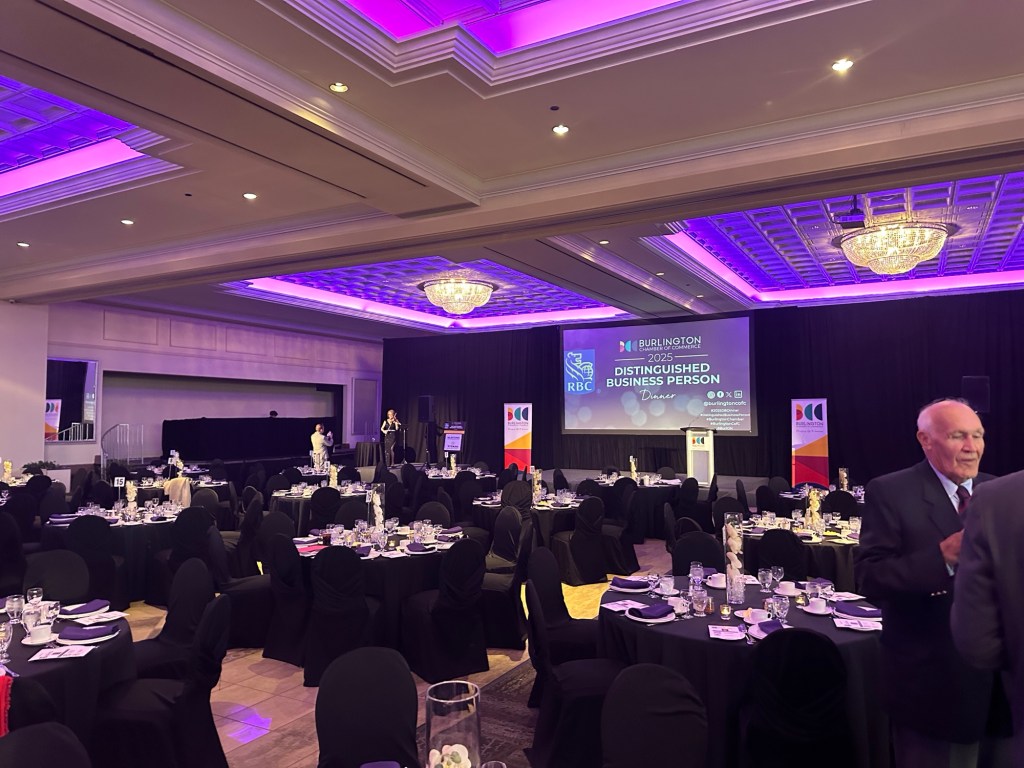 The Burlington Chamber of Commerce recently held a dinner event celebrating Bill DeLuca owner of Aldershot Landscaping. The team at Outridge Enterprises was on hand as guests of another Chamber Member. The evening consists of a cocktail hour, three course dinner, speeches and presentations all focused on Bill DeLuca, The Distinguished Business Person of the Year for 2025.